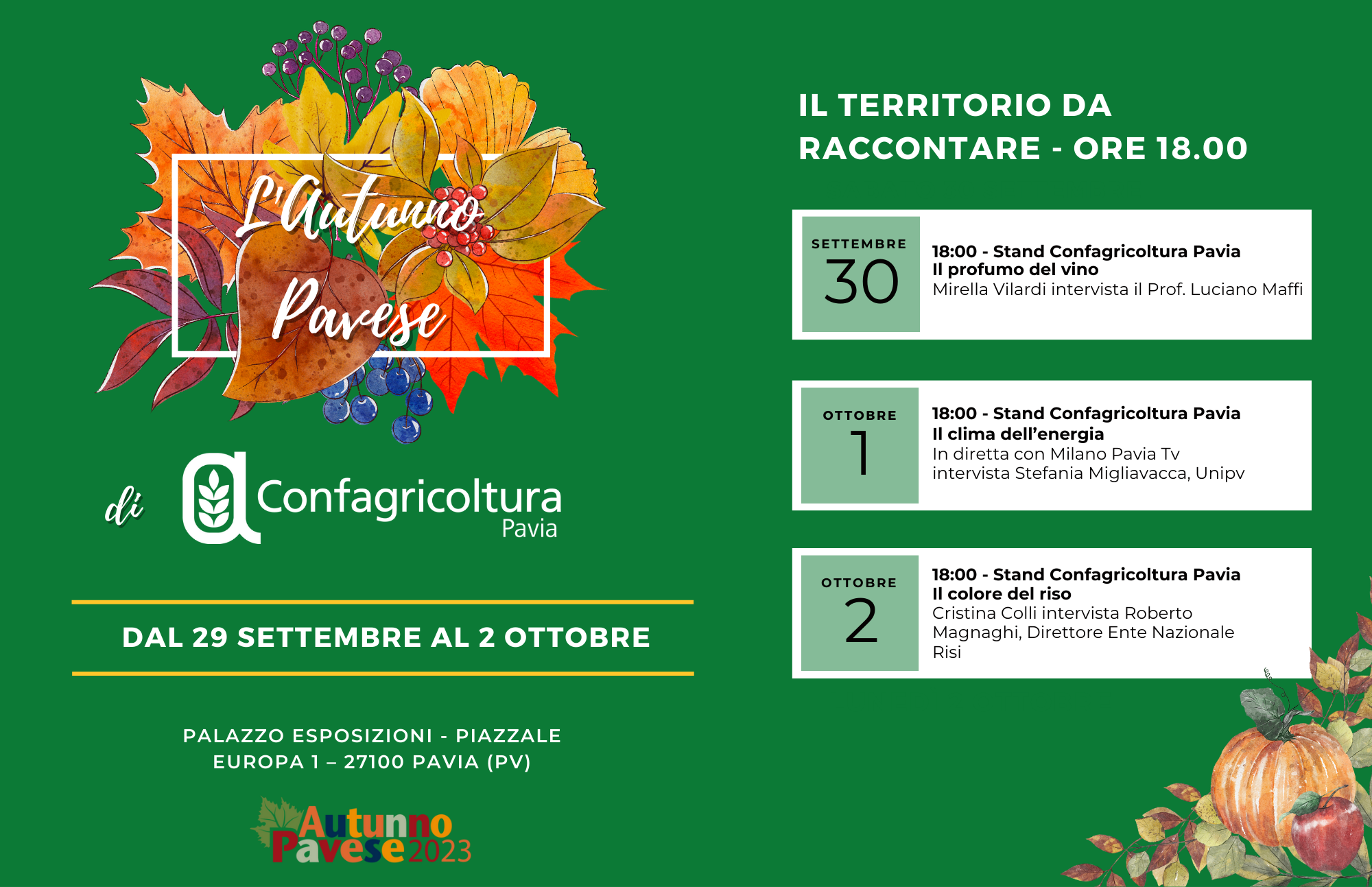 CONFAGRICOLTURA PAVIA PARTECIPA ALL'AUTUNNO PAVESE 2023