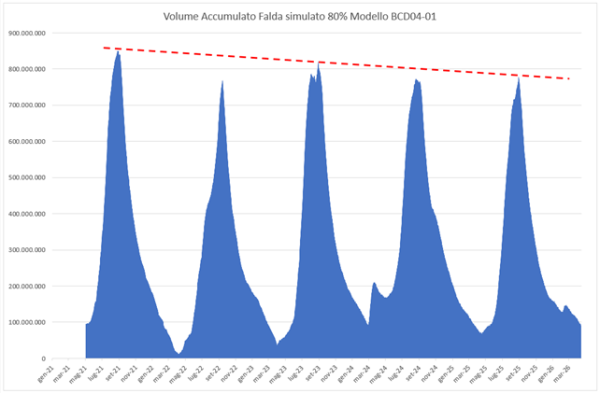 Andamento volumi accumulati in falda freatica – dato indicativo.
