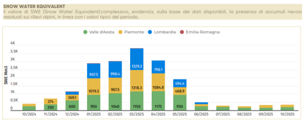 Al seguente link è visibile un bollettino dell’Autorità di Bacino per il Po che indica l’andamento dell’SWE nel corso del 2025.