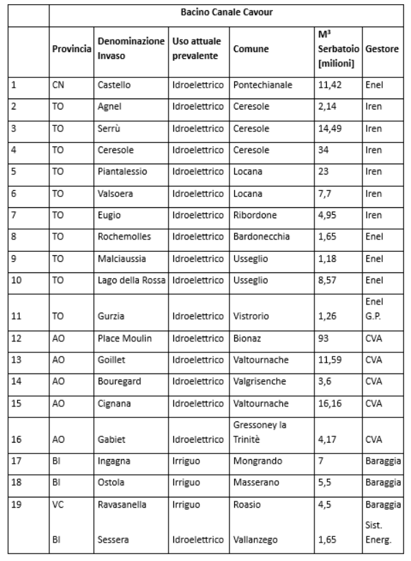 Andando ad incrociare e organizzare le informazioni è stato predisposto l’elenco dei principali invasi, già pubblicato ne “La Cura della Falda” edito da Astrolabio nel 2023.