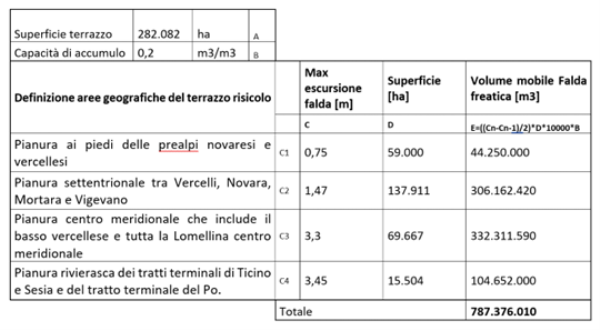 - Falda freatica, misurata in cm che rappresenta un volume complessivo stimato sulla base di una prima modellazione predisposta da Confagricoltura Pavia.