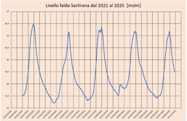 La figura 4 evidenzia il calo dei picchi tardo estivi e la riduzione del volume annuale complessivamente rallentato dalla falda freatica.