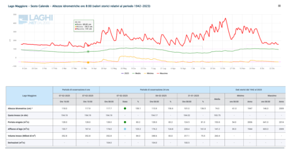 Il lago Maggiore ha un livello idrometrico pari a circa 118 cm sullo zero di riferimento, con un andamento in buona ripresa nelle ultime due settimane.