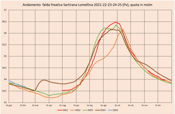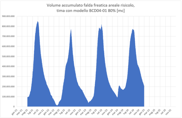 La falda freatica è in fase di costante calo e si conferma l’esaurimento del maggior accumulo riscontrato nelle precedenti analisi.