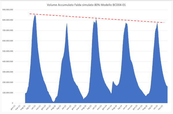 Andamento volumi accumulati in falda freatica – dato indicativo.