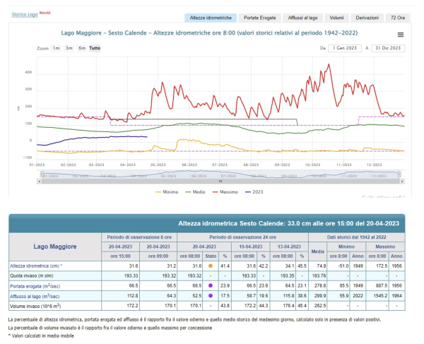 Riportiamo i consueti grafici acquisiti dal sito laghi.net.