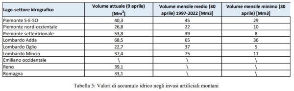 Non si ritiene di peggiorare lo scenario di allerta anche in considerazione di alcuni dati positivi rispetto all’accumulo di risorsa nei grandi invasi, così come reso noto dallo stesso osservatorio: