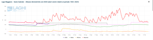 Il lago Maggiore presenta un livello idrometrico nell’intorno dei massimi di regolazione a circa 125 cm con una portata in deflusso in equilibrio con gli afflussi.
